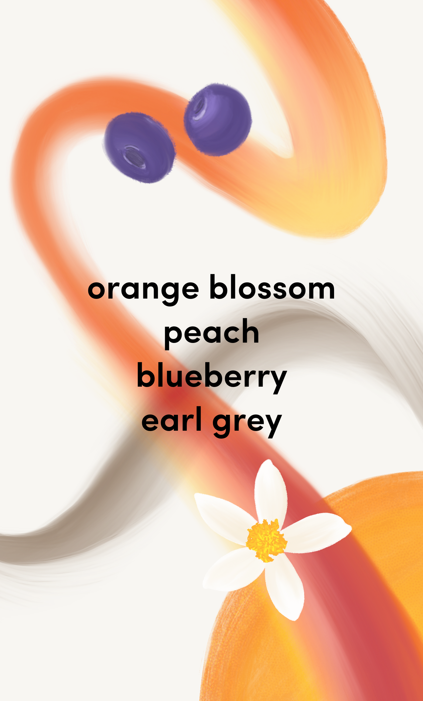 orange blossom, peach, blueberry, earl grey